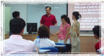 The vast majority of the time is devoted to pronunciation practice with individual sounds, words, and sentences. This is accomplished through a variety of means, depending on the make-up of the participants, but is usually structured around time devoted to listening, word drill, speaking alone, speaking in pairs, speaking groups, and even group debates. Listening practice is the period students focus on the instructor’s pronunciation by listening to the instructor give a short lecture on some aspect of American culture pertinent to their interests. Directed conversation practice follows with topics of students’ interest. Each student receives individual feedback from the instructor regarding their strengths and weakness, and each student is encouraged to use the Conversation practice time to address their respective issues